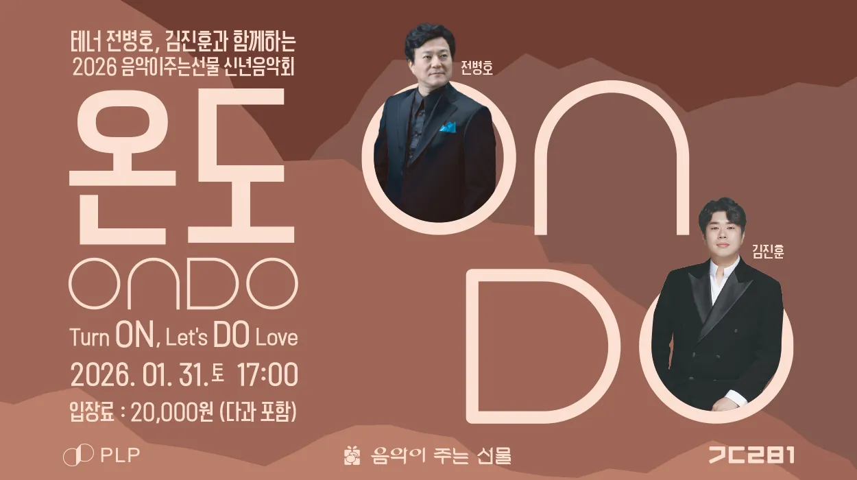 2026년 1월, '음악이 주는 선물'은 차가운 겨울의 한가운데서 가장 따뜻한 이야기를 시작하려 합니다. 이번 신년음악회는 중견의 깊이를 가진 테너 전병호와 청춘의 열정을 품은 테너 김진훈, 두 남자의 목소리로 채워집니다.