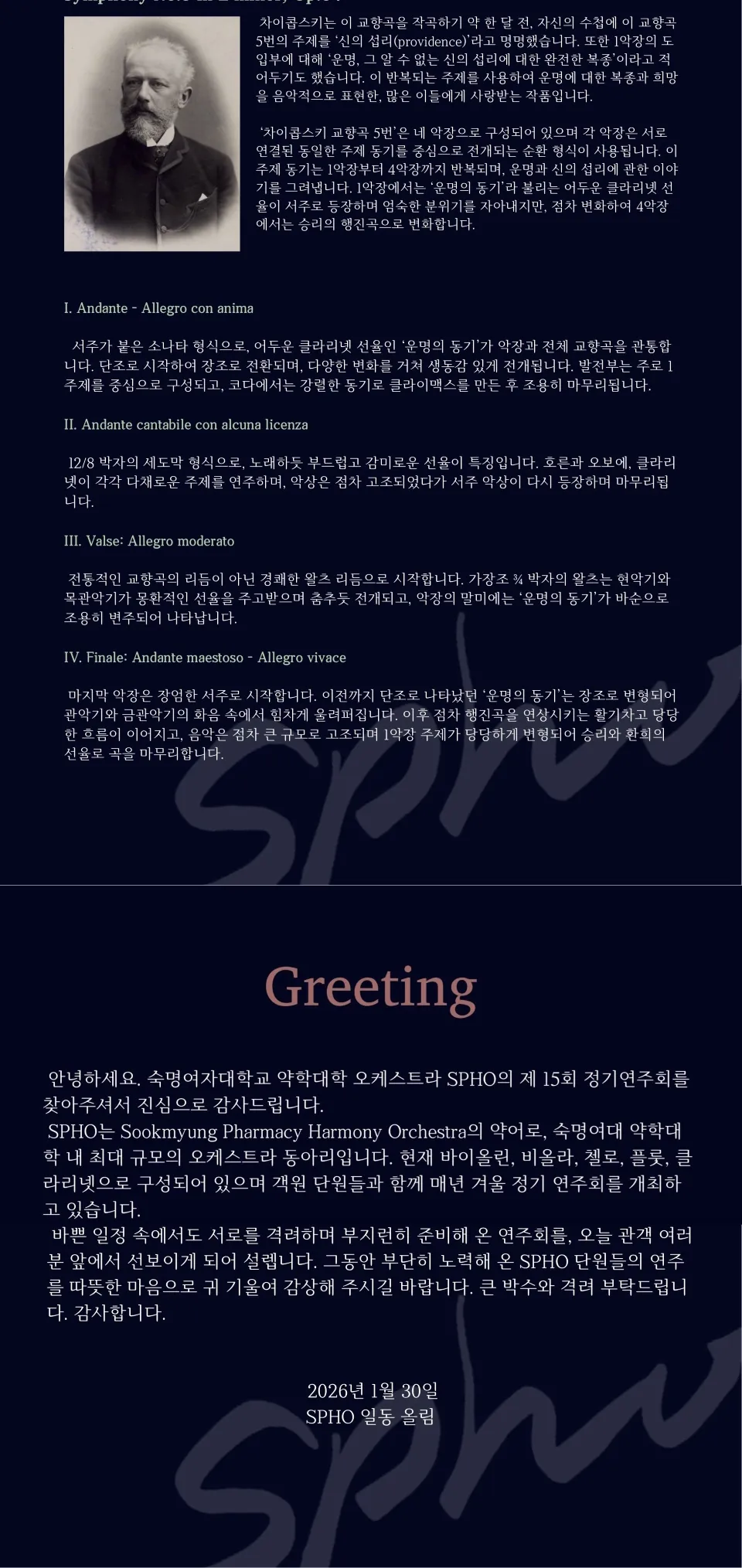 • 제15회 숙명여자대학교 약학대학 오케스트라 SPHO 정기연주회제15회 숙명여자대학교 약학대학 오케스트라 SPHO 정기연주회