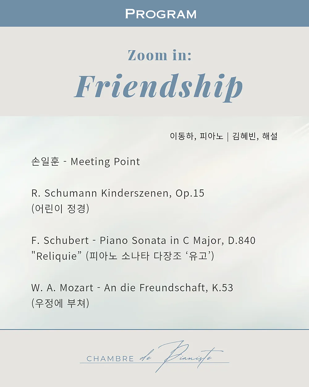 피아니스트 이동하 Zoom in Friendship
