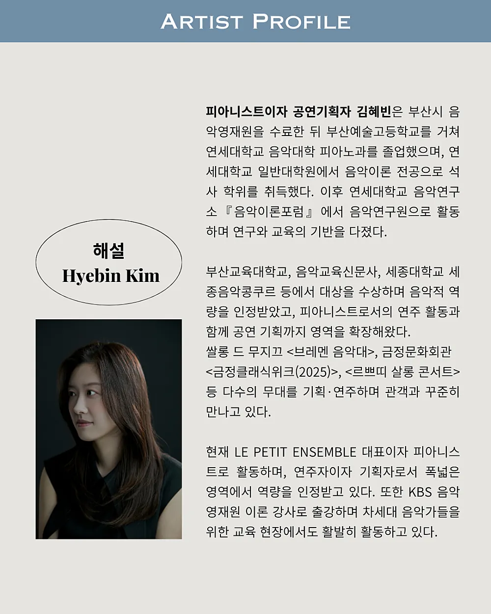 한 사람의 음악가를 가까이, 그리고 깊게 만나는 가장 사적인 콘서트!