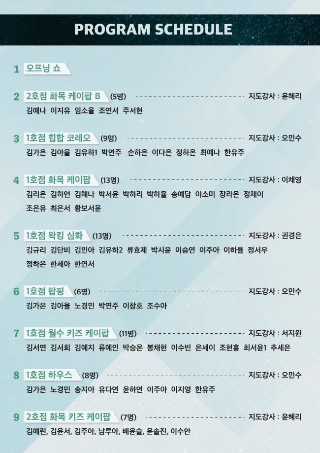 김예나, 이지유, 임소율, 조연서, 주서현, 김가은, 김아율 등