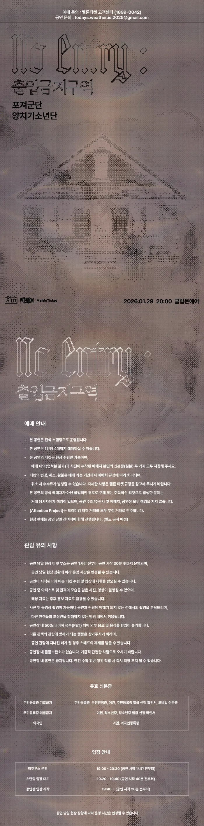 해당 공연은 공연예술통합전산망에서 제공되었으며, 통신판매의 당사자가 아니므로 상품의 예약, 이용 및 환불 등 거래와 관련하여 틱스코리아는 일체 책임을 지지 않습니다.