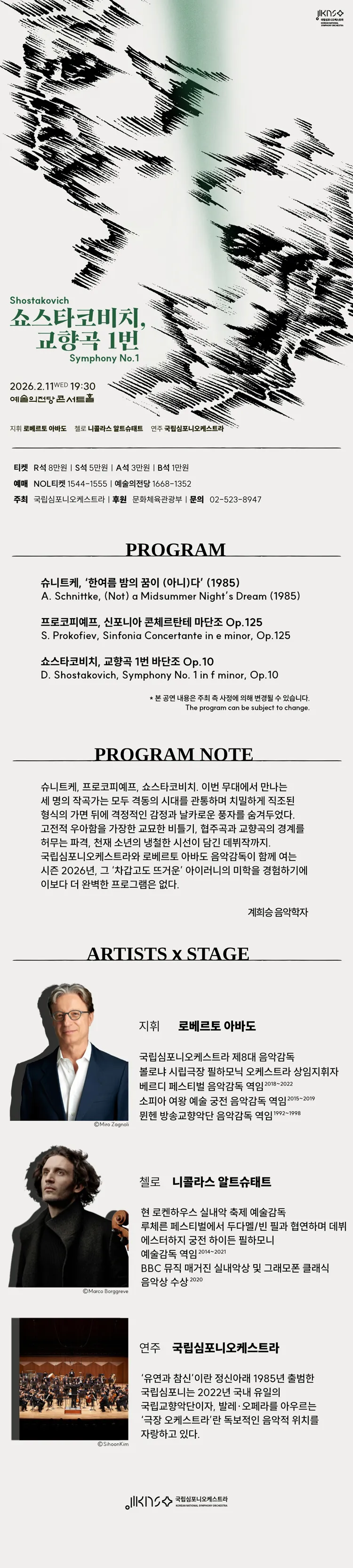 제261회 국립심포니오케스트라 정기연주회: 쇼스타코비치, 교향곡 1번