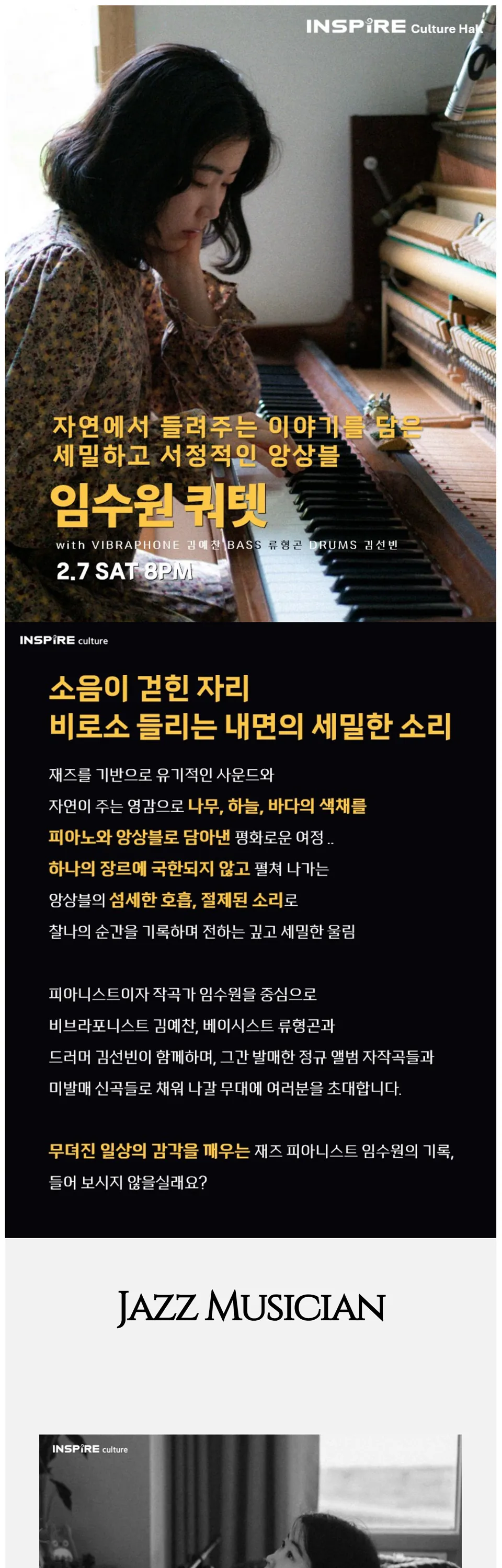 • 자연에서 들려주는 이야기를 담은 세밀하고 서정적인 앙상블 임수원 쿼텟 [화성]자연에서 들려주는 이야기를 담은 세밀하고 서정적인 앙상블 임수원 쿼텟 [화성]자연에서 들려주는 이야기를 담은 세밀하고 서정적인 앙상블 임수원 쿼텟 [화성]자연에서 들려주는 이야기를 담은 세밀하고 서정적인 앙상블 임수원 쿼텟 [화성]