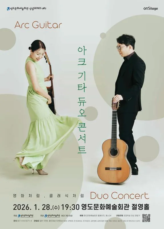 국내 유일의 남매 기타 듀오인 아크 기타 듀오(이성준, 이수진)의 <영화처럼, 클래식처럼>은 클래식기타 듀오의 섬세한 감성과 탁월한 연주력, 깊이 있는 해설이 어우러진 무대로, 영화음악과 클래식을 새롭게 재해석한 공연이다. 수백 회의 공연 경험을 통해 쌓아온 호흡과 무대 감각은, 단 두 명의 연주자만으로도 한 시간 동안 관객의 몰입을 끌어내는 밀도 높은 구성으로 이어진다. ‘시네마 천국’, ‘라라랜드’ 등 관객에게 친숙한 선율에서부터 바흐, 탱고, 스페인 기타 작품까지 폭넓은 프로그램을 선보이며, 친절한 해설과 함께 관객에게 깊은 감동과 몰입을 전달하고자 한다.