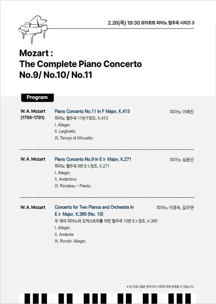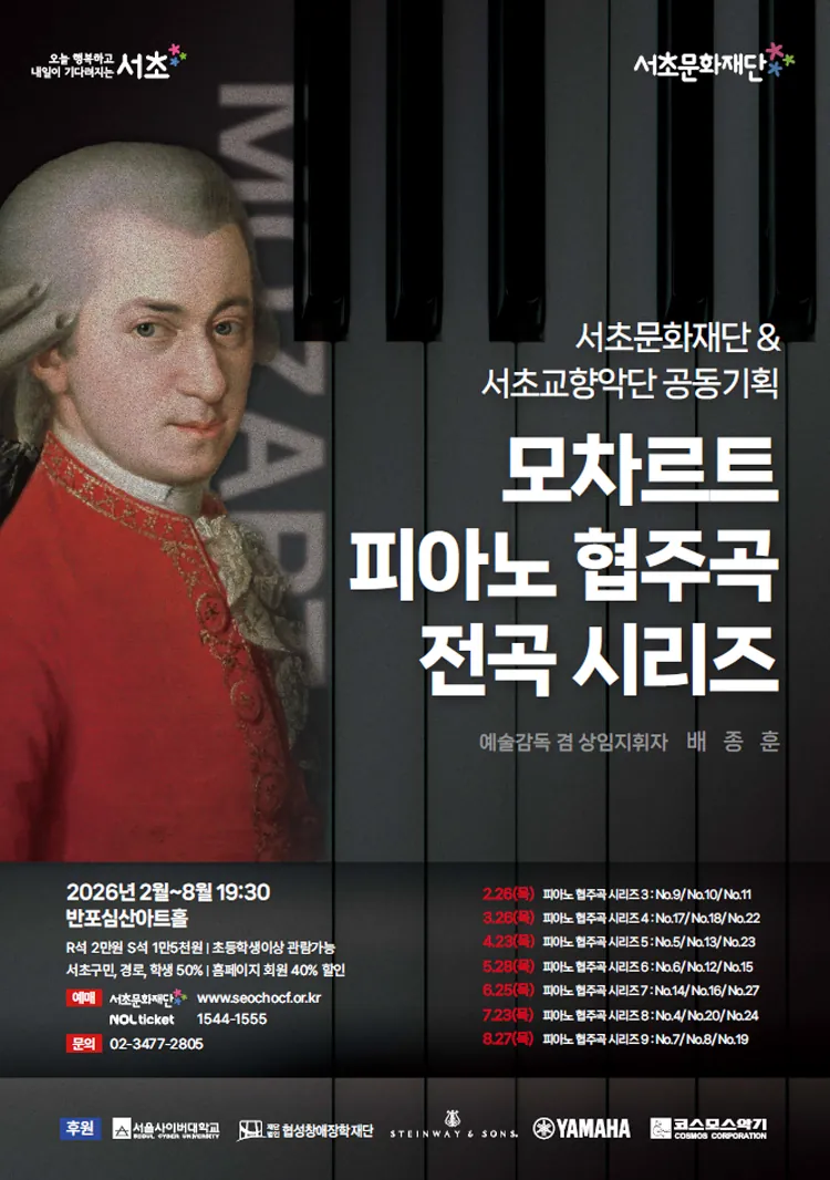 • 서초문화재단 & 서초교향악단 공동기획, 모차르트 피아노 협주곡 전곡 시리즈 3서초문화재단 & 서초교향악단 공동기획, 모차르트 피아노 협주곡 전곡 시리즈 3서초문화재단 & 서초교향악단 공동기획, 모차르트 피아노 협주곡 전곡 시리즈 3