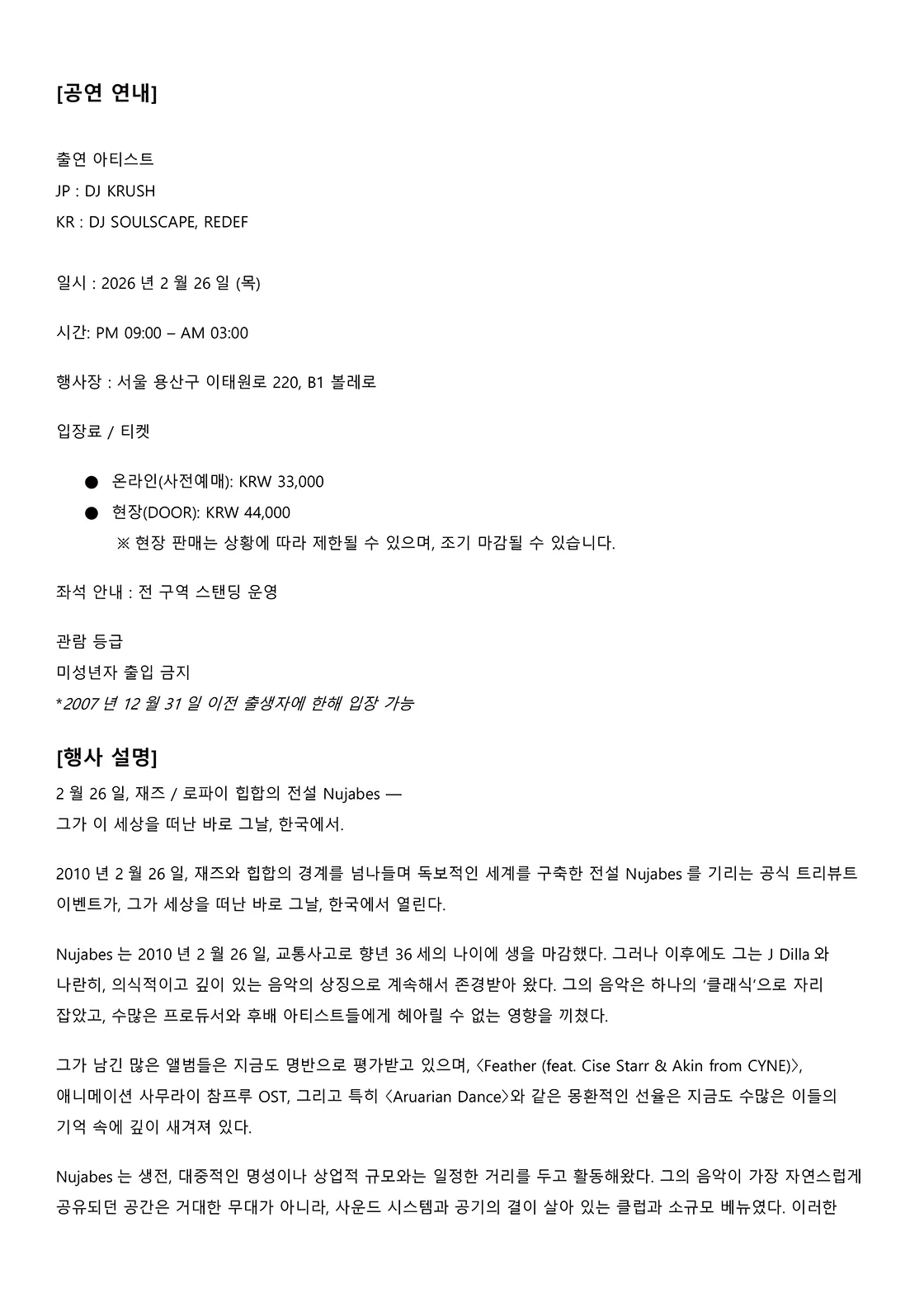 해당 공연은 공연예술통합전산망에서 제공되었으며, 통신판매의 당사자가 아니므로 상품의 예약, 이용 및 환불 등 거래와 관련하여 틱스코리아는 일체 책임을 지지 않습니다.