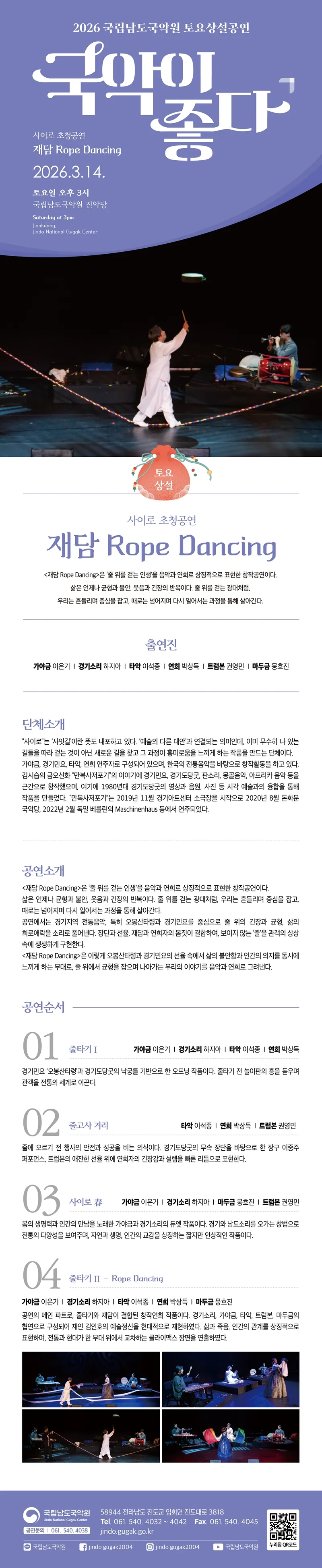 국립남도국악원 토요상설: 국악이 좋다, 사이로 초청공연: 재담 Rope Dancing