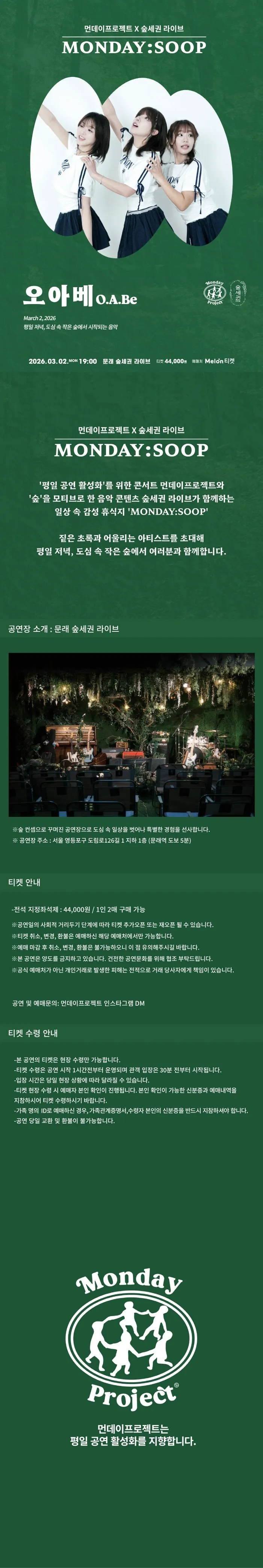 • 먼데이프로젝트X숲세권 MONDAY: SOOP, 오아베 단독 콘서트