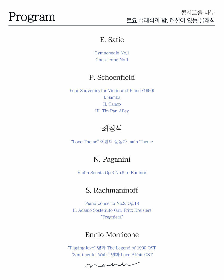 토요 클래식의 밤, 해설이 있는 클래식: 리벤티아 앙상블, Love Theme