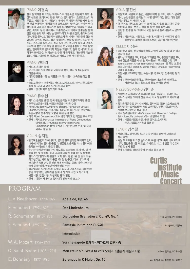 • 커티스음악원 정기연주회: Curtis Institute of Music Concert커티스음악원 정기연주회: Curtis Institute of Music Concert