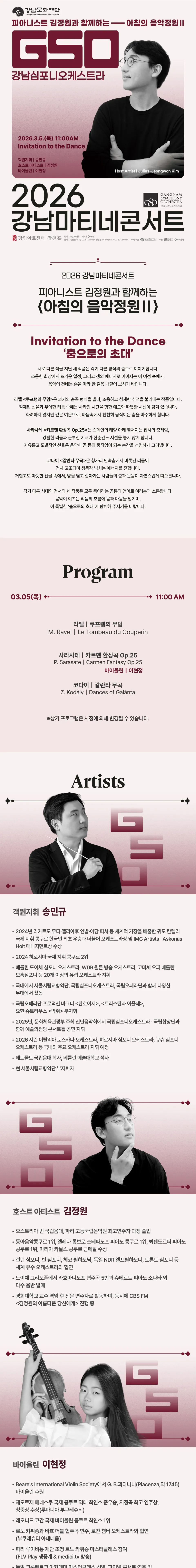 • 제181회 강남심포니오케스트라 강남마티네콘서트: 피아니스트 김정원과 함께하는 아침의 음악정원 Ⅱ제181회 강남심포니오케스트라 강남마티네콘서트: 피아니스트 김정원과 함께하는 아침의 음악정원 Ⅱ