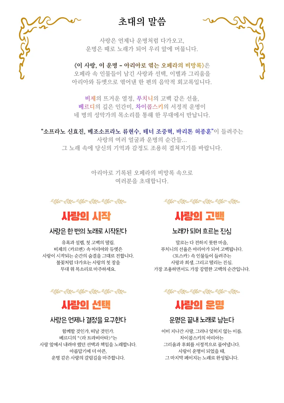 • 이 사랑, 이 운명. 아리아로 엮는 오페라의 비망록이 사랑, 이 운명. 아리아로 엮는 오페라의 비망록이 사랑, 이 운명. 아리아로 엮는 오페라의 비망록