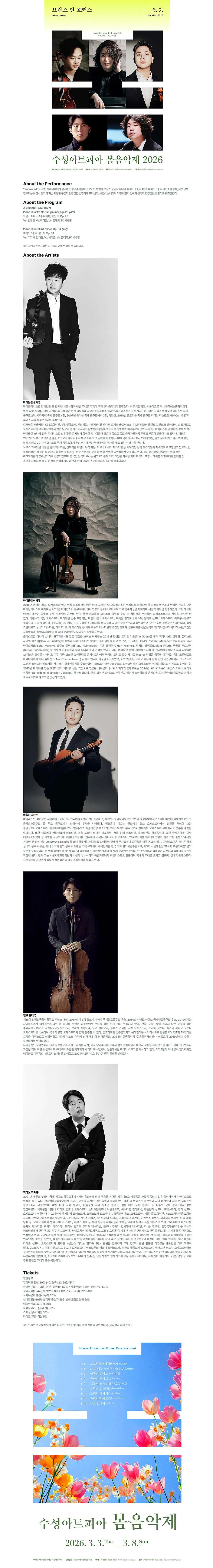 • 수성아트피아 시즌페스티벌, 봄 음악제: 브람스 인 포커스 (Brahms in Focus) [대구]