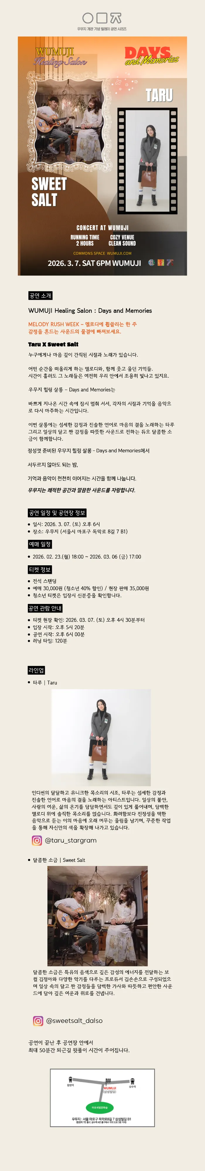 WUMUJI Healing Salon: Days and Memories, 타루 X 달콤한 소금