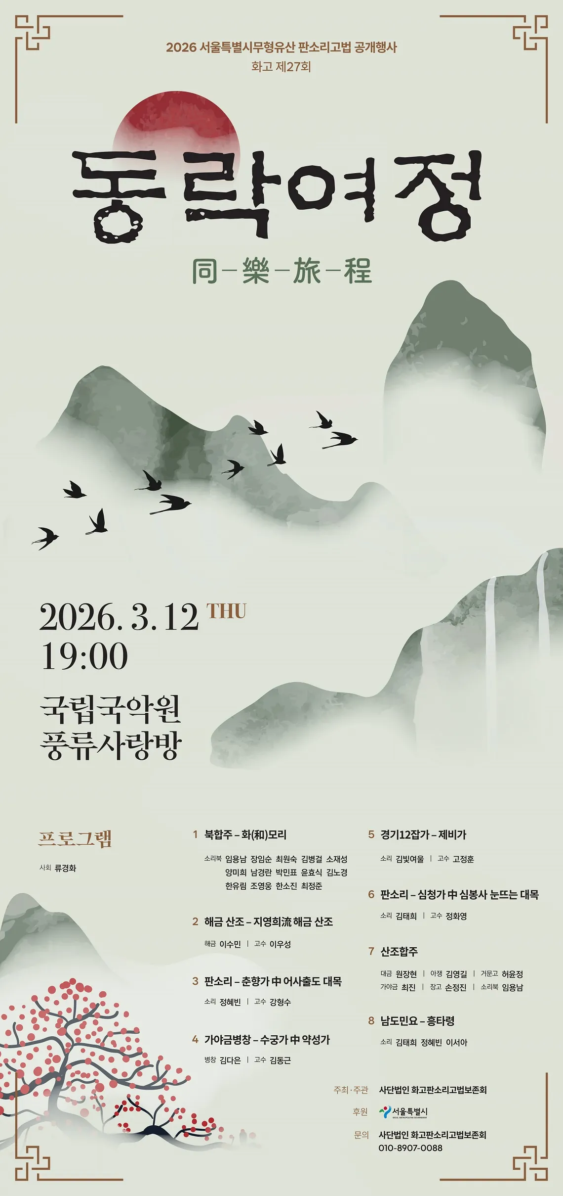• 제27회 서울특별시무형유산 화고판소리고법 공개행사: 동락여정 同樂旅程